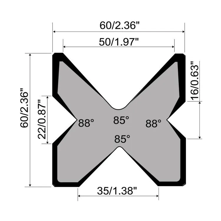 Multi-V die R1 European type with height=60mm, α=88/85°, Material=C45, Max. load=800kN/m.