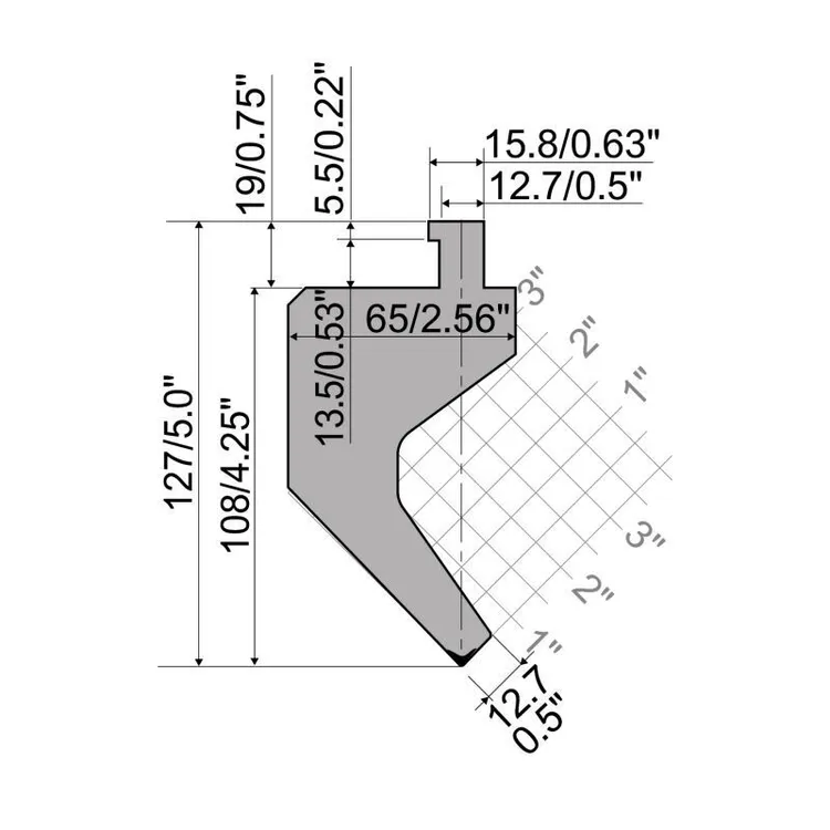 Punch R5 American type CLASSIC Series with Working height=105.5mm, α=85°, Radius=1.6mm, Material=42cr, Max. load=700kN/m.