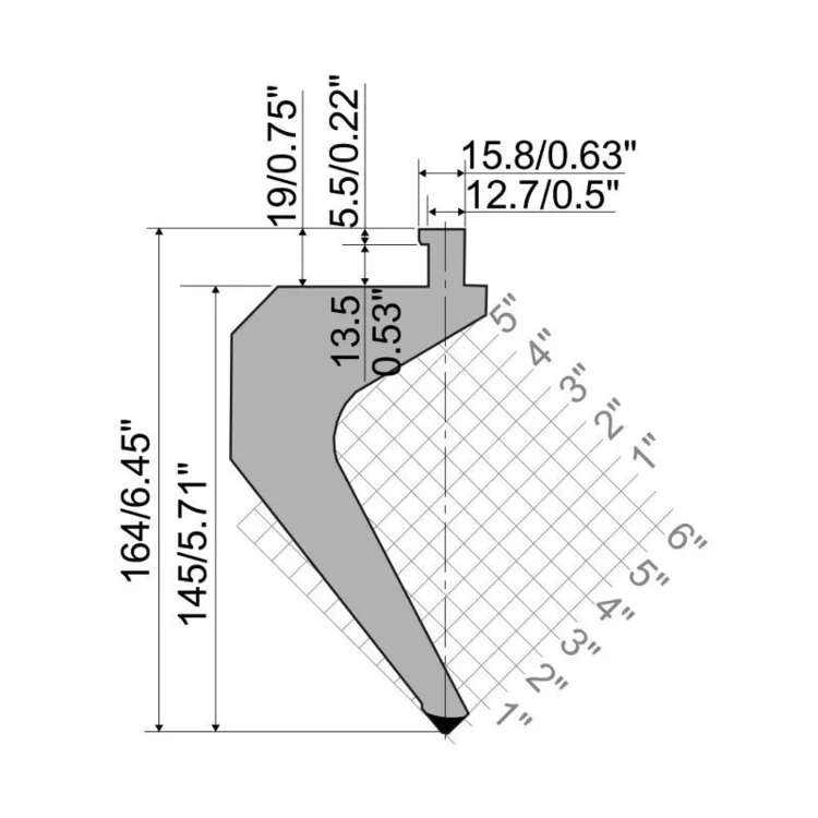 Punch R5 American type TOP Series with Working height=145mm, α=85°, Radius=0.8mm, Material=42cr, Max. load=9000kN/m.